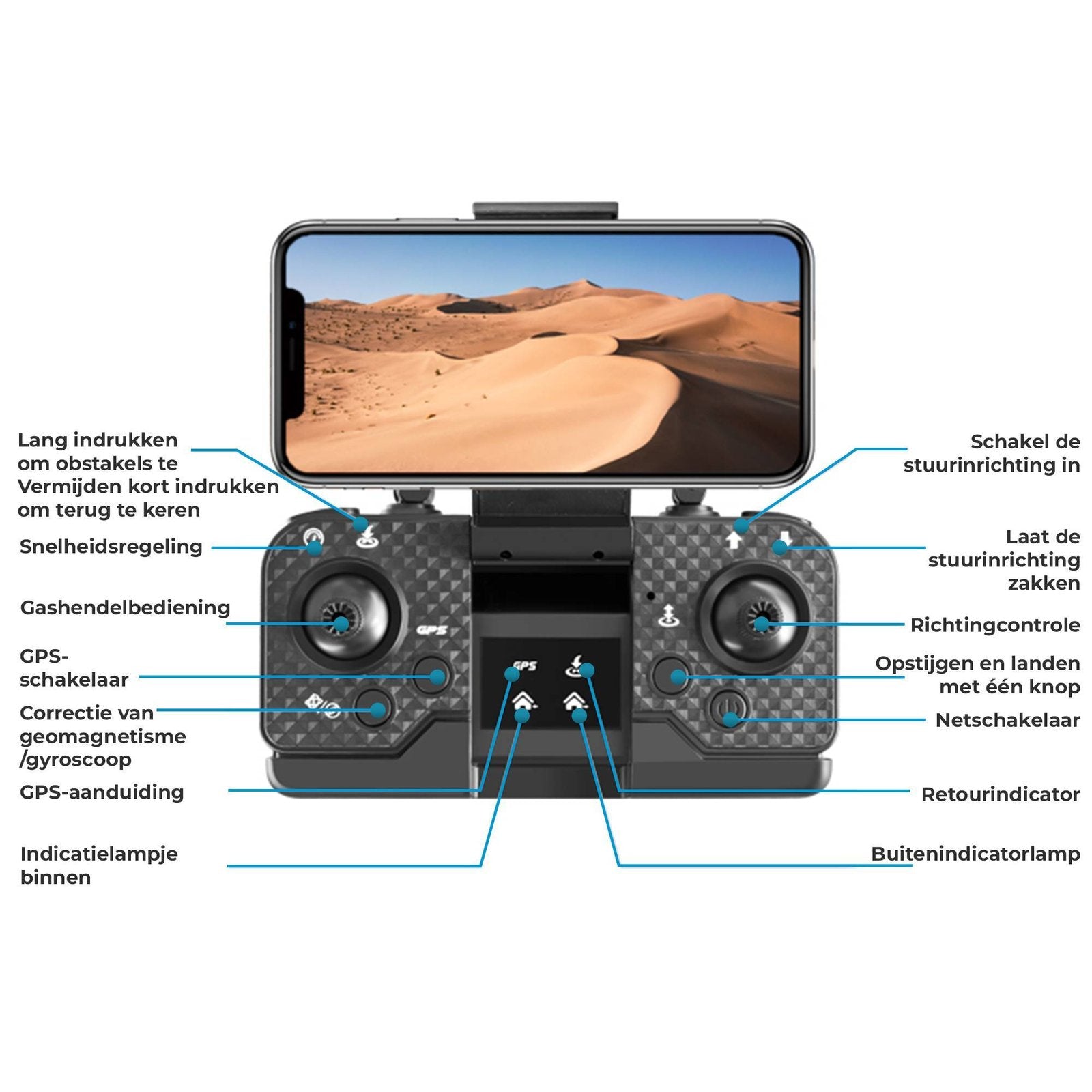 Dankzij de Return-to-Home-functie keert de drone automatisch terug naar het opstijgpunt bij signaalverlies of lage batterij. Dit voorkomt verlies van de drone.